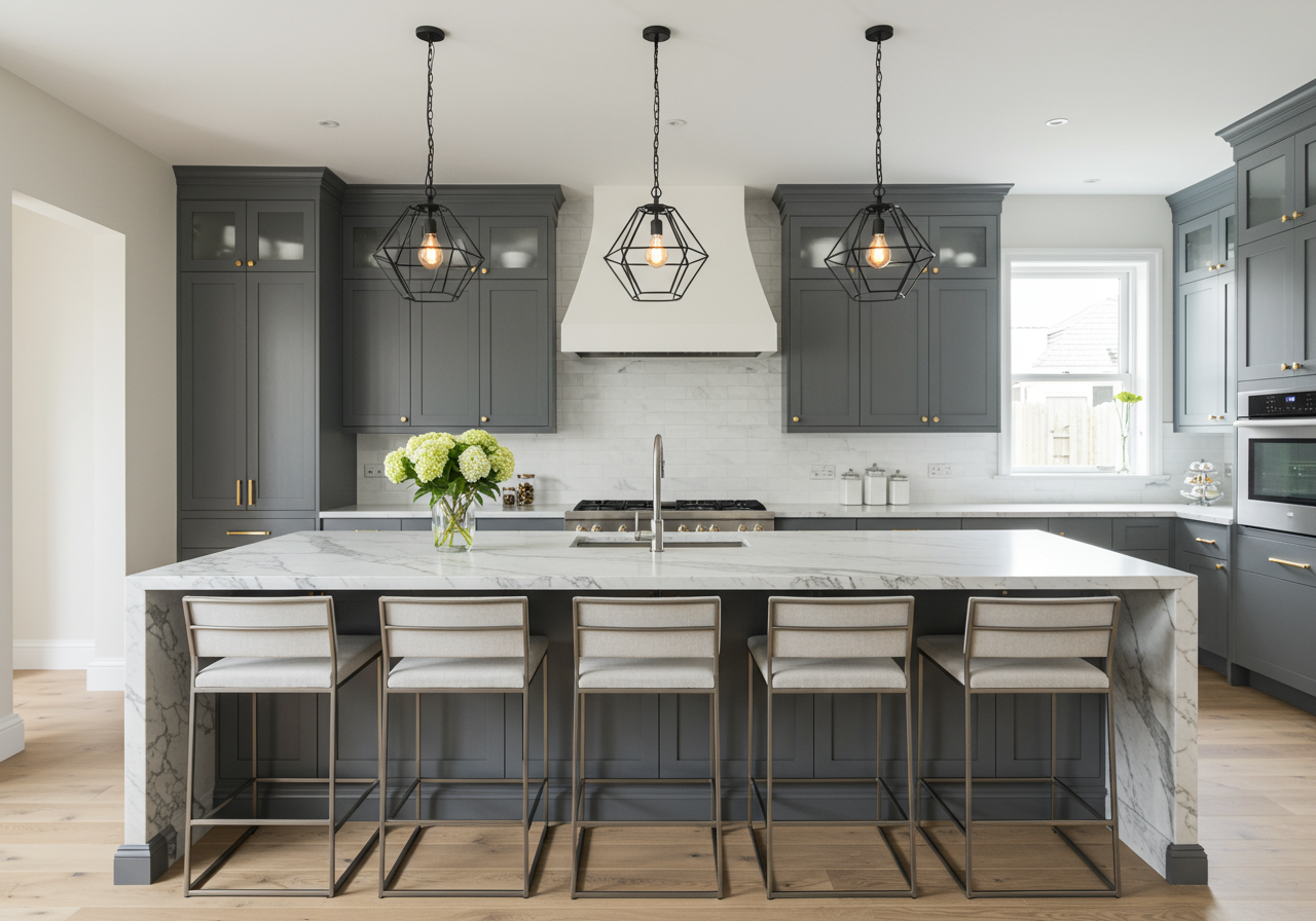 Adding a statement backsplash that co-ordinates with your cabinets and countertops