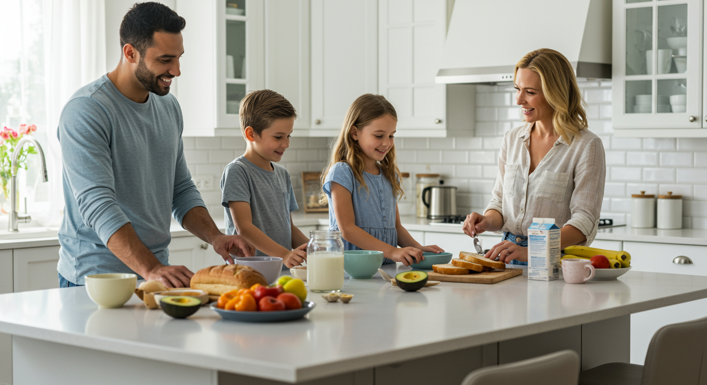 Wood floors in kitchens provide an organic, contemporary style compared to tile floors or other flooring materials. Consider putting in a hardwood floor, along with wooden shelves, to achieve this look. You might also want to include warm wood cabinets in your kitchen, especially if the rest of the room has a cooler color scheme.